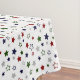 Nappe blanche avec un assortiment d'étoiles rouges, vertes, marines et argentées, est une belle nappe croustillante à utiliser pour vos occasions spéciales de Noël.