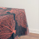 Motif vectoriel en coraux de ventilateur en couleur corail vivant sur arrière - plan bleu foncé.