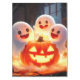 Une charmante famille fantôme, souriant et jouant joyeusement autour d'un citrouille brillant. Une ambiance chaleureuse et fantaisiste inspirée d'Halloween, aux couleurs douces.