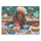 Découvrez la joie de la cuisine de vacances avec cette scène enchanteresse avec un chef gai entouré de gâteries de Noël et de décorations festives. Une célébration chaleureuse des traditions les plus douces de la saison.