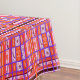 Cet art de moi, Kristie Hubler, sur cette nappe d'un motif répétitif, est un art folklorique abstrait, féminin, avec des perruques, tourbillons, courbes, spirales, points et fleurs à l'intérieur d'une disposition plaid, en rose, saumon, orange, or, perwinkle profond iris, aubergine ou brun roux foncé