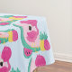 Tissu de table avec un motif composé d'une jolie illustration - flamants roses, pastèques et ananas. Couleurs rose et vert. L'été et tropical.