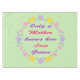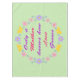 Cette superbe nappe présente une sélection de jolies fleurs, dont des cosmos bicolores rose pâle et brillant, des marguerites roses, des chrysanthèmes violets pâles et des bleus ne m'oublient pas fleuris et papillons jaunes formant un cercle autour d'une jolie écriture en violet et rose qui dit "Seule une mère sait comment l'amour grandit". Un joli design pour célébrer une Mère.