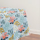 Des fleurs pop art colorées et stylisées, aux accents bleu, vert et noir sur un arrière - plan bleu ciel, confèrent une nappe moderne et élégante.