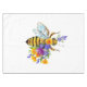 Artistically drawn, flower, honey bee with contrasting colors, yellow, bright, blooming california poppy and blue wild plants on white background.