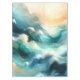 Des vagues douces et fluides dans des tons de sarcelle et de turquoise riches se mélangent parfaitement à une lumière dorée chaude.