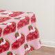 La nappe est ornée d'un marqueur original illustrant une tranche de tarte à la fraise sans gâteau garnie de crème fouettée.