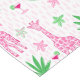 Une nappe avec un design de girafe unique et amusant. Il présente des girafes roses avec des cosmopolitains, des fleurs et de l'herbe haute. Les couleurs sont vives et le design est accrocheur. C'est l'ajout parfait à une fête et ajoute une touche ludique à n'importe quel espace.