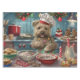 Découvrez la joie de la cuisine de vacances avec cette scène enchanteresse avec un chef gai entouré de gâteries de Noël et de décorations festives. Une célébration chaleureuse des traditions les plus douces de la saison.