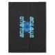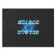 Une nappe élégante pour Shabbat. Elle comporte un texte hébreu lisant "Shabbat Shalom" (שבת שלום), "un sabbat paisible," ou "sabbat de paix," en bleu et blanc lumineux sur une image de fond fractale bleue.