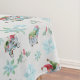 Le motif de vacances festif présente des gnomes de Noël géants illustrés d'aquarelle dans des brouettes, sur des vélos et des tours de cadeaux, ainsi que des poinsettias saintes et blanches sur arrière - plan gris clair
