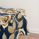 Golden Roses With A Metallic Finish On A Cool Navy Blue Background With Intricate Leaf Details For A Luxurious Regal Look