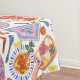Indulge in the delightful world of gourmet bites with this eye-catching tablecloth. The intricate pattern showcases a delightful array of food illustrations, from artisanal cheeses and charcuterie to fresh seafood and sunny-side-up eggs, all set against a clean white background. This unique design adds a touch of sophistication and whimsy to any dining setting, making it perfect for hosting dinner parties or enjoying a casual brunch. Let this culinary-themed tablecloth be the centerpiece of your next meal, sparking conversation and delighting your guests with its charming details.