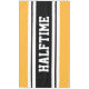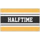 Cette conception sportive et sportive présente un texte HALFTIME en gras à l'intérieur d'une large bande noire surlignée avec deux bandes blanches contre des bandes extérieures jaunes dorées. Le texte de cette conception peut être personnalisé.