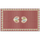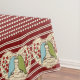 Cette nappe présente le design original d'HoMeArts de Robin aux lovebirds verts d'oeuf et d'avocat entourés de branches et de baies rouges dans un coeur jaune citron se démarque d'un arrière - plan de rayures rouge foncé et crème.