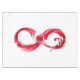 Infinity symbole of continuous stream of red pouring into glass glass glass on white background.