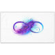 Infinity symbole with a beautiful feather painted in purple and blue bright colors on white background