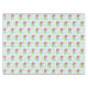 Joli lapin blanc regardant par-dessus deux œufs de Pâques colorés. Un œuf est bleu avec des rayures jaunes, l'autre est rose avec des points violets. Le joli petit lapin a des yeux bleus et une oreille levée et une oreille baissée. Au-dessus du lapin se trouvent des fleurs et des feuilles colorées.