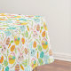 Adorables lapins bleus et roses entourés de carottes, de verdure, d'œufs de Pâques verts, bleus, violets et dorés, et de corbeilles pleines de friandises !