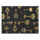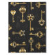 Seamless pattern of antique, gold and silhouette keys on black background.