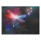 Lumineuse, volante, libellule rouge, avec des ailes transparentes et détaillées sur arrière - plan sombre, nocturne, lumineux avec plantes tropicaux et lucioles. libellule rouge.