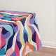 Cette conception est composée d'un motif fluide et abstrait, avec une disposition symétrique en miroir. Des formes ondulées et organiques s'intègrent harmonieusement, formant une composition audacieuse mais harmonieuse. La palette de couleurs mêle violets profonds, bleus, teals, roses et jaunes chauds, créant un contraste animé. L'effet stratifié donne un sens du mouvement, presque comme du liquide fluide ou du tissu ondulant. Les courbes douces et les couleurs audacieuses se combinent pour évoquer un mélange d'esthétique rétro et moderne, qui rappelle des motifs psychédéliques ou des motifs d'inspiration du milieu du siècle.