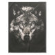L'aura monochrome majestueuse d'un loup solitaire avec son regard perçant et sa fourrure fluide évoquant un sentiment de beauté indomptée.