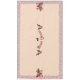 Nappe de Noël à l'ancienne avec notre couple victorien et leur petit chien à chaque extrémité ; et les mots, Joyeux Noël au centre. La bordure de la carte d'origine entoure le fond de la nappe.