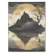 Ce tableau représente une forêt éclairée par la lune, avec un arbre solitaire debout haut. La lune et la montagne se reflètent dans l'eau en contrebas, créant une scène magnifique et sereine. Le tableau rappelle la beauté et le mystère de la nature.
