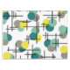 Une ère atomique rétro inspiré motif avec des cercles moléculaires turquoises, turquoise, gris et jaune, ainsi que des lignes audacieuses de style moderne du milieu du siècle.