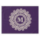 Nappe décorée d'un monogramme élégante pourpre et crème qui est la nappe parfaite pour n'importe quel événement ou occasion.