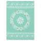Élégant turquoise-vert flocon de Noël motif avec une couronne blanche de noël fait de symboles de noël.