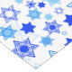 Habillez votre table de vacances avec cette conception qui comporte l'étoile de David dans une série de conceptions et nuances de bleu.