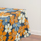 Un motif floral vibrant couvre l'ensemble de l'image. De petites fleurs stylisées dans les tons orange, bleu clair et blanc cassé sont densément disposées sur un arrière - plan bleu marine. Les fleurs ont un aspect légèrement imparfait, peint, avec des variations dans la saturation des couleurs et la forme qui donnent au motif un look texturé, presque peint à la main. Le motif répété crée un effet visuel gai et occupé.