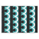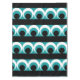 Geometric pattern illustration with stripes, circles and round shapes in turquoise, black and white colors