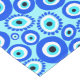 Nappe aux couleurs vives imprimée d'un motif des mauvais yeux grecs. Les Grecs anciens croyaient que le porteur ou le porteur de ce symbole serait protégé du regard maléfique des autres. De nos jours, l'oeil est considéré comme un symbole de chance ou un talisman.