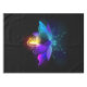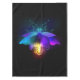 Vieux, luciole mécanique avec ampoule et ailes fines brille orange, violet, turquoise sur arrière - plan noir. Style Steampunk.
