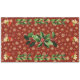 Noël Dancing Baby Angels accrochés à une fleur de Poinsettia avec des flocons de neige en or sur l'arrière - plan rouge pour cette nappe de fête de vacances.