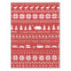 Jolie nappe de Noël californienne. Une table amusante pour vos fêtes. Ce motif festif de Noël rouge et blanc présente l'ours de l'état de Californie, des pins, un chien faisant du skateboard et des voitures avec un sapin de Noël et un planche de surf. Texte: "Noël californien, amour, joie, paix, soleil."