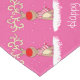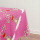 Personnalisez cette nappe de fête de Noël rose avec votre propre message saisonnier ou le nom, lit actuellement Noël heureux du bloomberg. La couleur d'arrière - plan peut également être changée pour adapter aux couleurs dans votre salle à manger, actuellement rose lumineux. Art lunatique de caractère de renne au nez rouge avec une écharpe rose et rouge de fête et au-dessus de grands andouillers bouclés classés conçus par Sarah Trett.