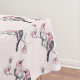 Nappe à motif avec un tableau aquarelle. 2 oiseaux roses et noirs assis sur une branche d'arbre aux fleurs roses.