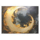 Énergie et élégance lune métallique avec un tourbillon doré fluide sur un fond noir profond.