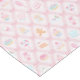 This table cloth design has a preppy grandmillennial holiday treats pattern with cookies, candies and gingerbread with pink bows.
