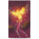 Une nappe ornée d'un phénix se levant sur un arrière - plan violet.