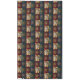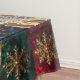 Nappe de vacances avec filaments d'or convient des flocons de neige sur des images rouges, bleues, vertes de velours avec un flocon de neige blanc sur une image de velours d'or. Ensemble, elles se répètent dans une nappe élégante richement colorée.
