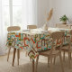 This tablecloth features a bold mid-century modern geometric pattern with overlapping rounded shapes in warm, retro-inspired tones. The layered colorblock design adds visual rhythm and a playful vintage feel while still reading clean and modern. Perfect for creating a statement table setting for everyday dining, entertaining, or retro-inspired gatherings.