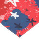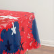 Nous aimons ce design, rouge avec des rayures bleues et des étoiles noires et blanches ! Cette nappe en tissu est disponible en 3 tailles : 52"x70" 60"x84" et 60"x104"
