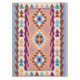 Tapis de kilim en mosaïque orientale coloré avec des ornements géométriques traditionnels. Moquette à motifs avec cadre de bordure.