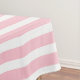 Cette nappe présente un motif simple et moderne à rayures blanches et roses.