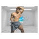 SlipperyJoe's Homme serviette cassée mur de brique blanche nue poitrine torse muscles fêlé sol brisé mur de brique tropicale plage barbe rêve artistique cadeaux de gay pride LGBTQIA gris brun blanc bleu nuances unique effet visuel